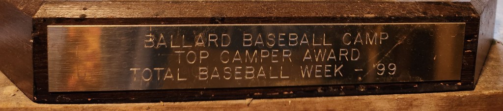 A few things got designated to the giveaway garage. Including a trophy for, “Top Camper Award” for a week-long baseball camp. Rey, the recipient, would have been 12.