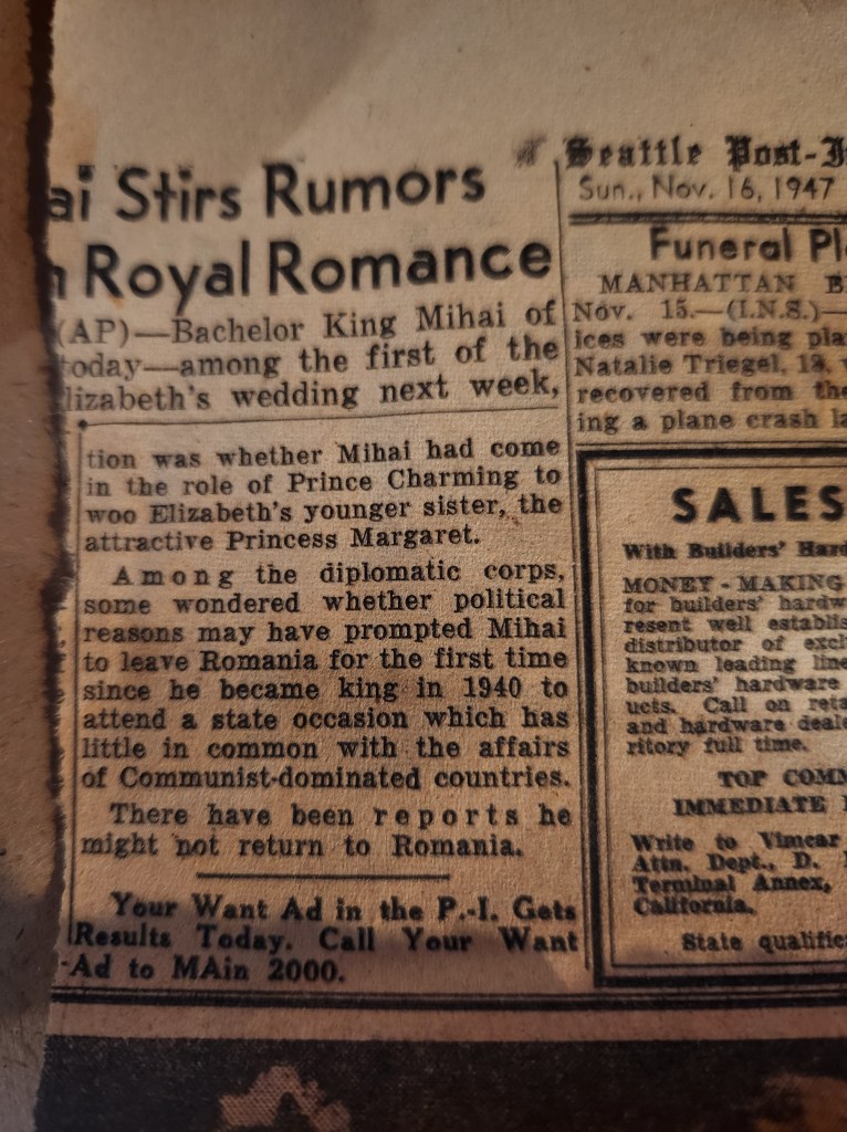 This is only the end of this article associated with the wedding of Princess Elizabeth and Philip, although it’s about Princess Margaret and King Mihal of Romania Bus to Portland only $2.50A baseball related article, of course Presidential AdviceA crossword puzzle for those so inclined.