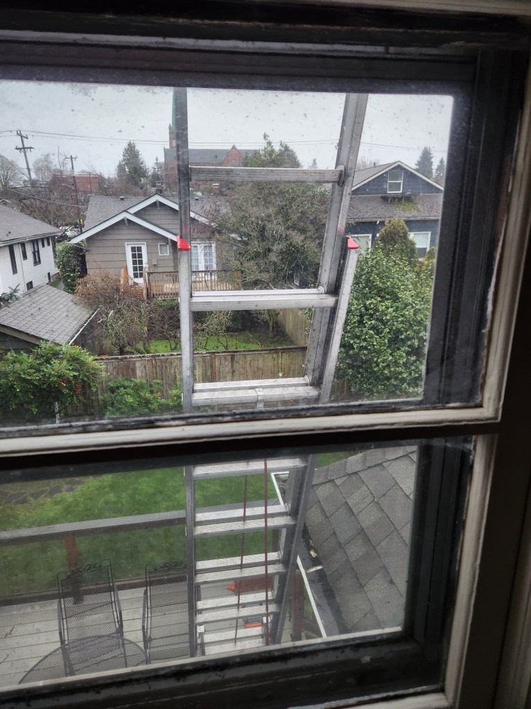 Two workers arrived mid-morning and proceeded to start cleaning. I showed one of them the problem gutter, and he took care of that first. I haven’t been able to fully verify the fix, but I choose to be positive.