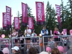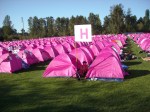 Walk – We split into two groups from the start – fast and slower, only this time I went slower. It is not really slow, just slower than fast. Our fast duo finished 20 miles in the top 160 (they count to keep track, not as a finishing spot). Our three wended our way through Redmond and Kirkland, following along. The Kirkland Hill was notable, an average grade of over 5% for almost 2 miles – It was great. At the top of the hill was a cheering station – the number of people that turn out to cheer you on is always amazing. Just off of the cheering station our fifth flamingo announced she wanted to stretch at the corner. I noticed a rail fence that would be good for the task and redirected us to the side of the road. Of course, what I had not noticed, but the others did, was the pile of horse shit just on the other side of the fence. We did manage to move about 20 feet down the fenceline and actually stretch, all the while laughing uproariously to the bemusement of other walkers. To our further laughter a few others decided to stretch there as well, and ended up right in the same spot we had started. Returning to the sea of pink tents by late afternoon was a relief.