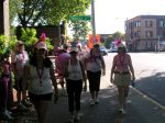 Our team, the Pink Flamingoes had five members. (Yes, spelled incorrectly by a sixth member that spelled it wrong on the application, and then dropped out of the walk. So I decided it was really supposed to be Flamin-goes, sort of a walking thing. Then I noticed I managed to spell it Flaming on my badge – I think I got interrupted.) Back to the team – I had only met three of the four others. One I know well – co-worker, the second is a friend of hers – restaurant manager, the third a friend of the second – teaches wine making at a local college, and the fourth an acquaintance of the third – another restaurant manager. Four of us managed to get our “luggage” onto the appropriate luggage truck (H) and rendezvous at the opening ceremony.