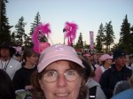 There were 3200 women and a few men converging at the opening ceremony, and we use our flamingo hats as a way to readily find each other among all of the pink people. The fifth flamingo was nowhere to be found and because we had not met her she did not have her flamingo hat to help us out.