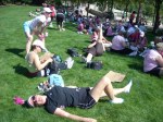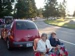 Compared with 2007, the first day of 2008 was slow. A larger group, slow start, and the numerous traffic lights to contend with continuously in Bellevue made it just slow. Except for the start it was never mall-walking speed, but … Finally reached camp. Find the bags, find a tent, find our space, set up tent – Shelley, my tentmate arrived during set-up, bonus. She reported that our fifth flamingo was even tenting in a different area (time of sign-up difference). We all got together for the evening’s entertainment.