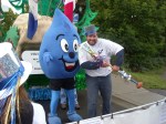 The weather was grey more than anything. It poured until just before we got in line (to wait), and sprinkled a bit during the parade, and then started pouring right after we got off the parade route. So apparently the powers that be thought a water conservation message would be better received during dry spell. Everyone did really well and it was a lot of fun. I am now ready for a nap.