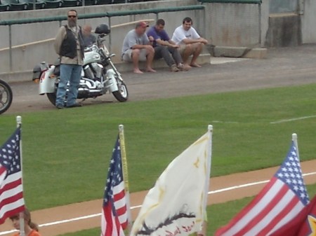 Waiting on the tarp (purple shirt)