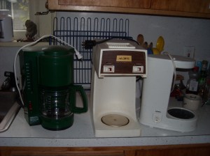 Hmmm. But then, why were we always going to the Mr. Coffee. Because the newer machines tended to fail. And then we failed to fix or dispose. Our hoarding generally starts with good intentions to try and fix something. (Not that we are especially handy with small electrical appliances.)
