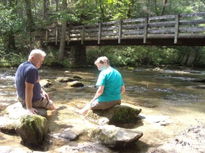We stopped for the first sandwich at a location where there were sittable rocks in the stream.