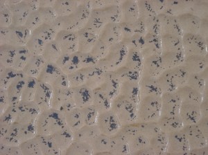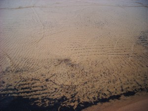 Carl & I took a beach walk. It was very smooth water, and the water was out – leaving some areas where the water could move in very shallow waves over the sand.
