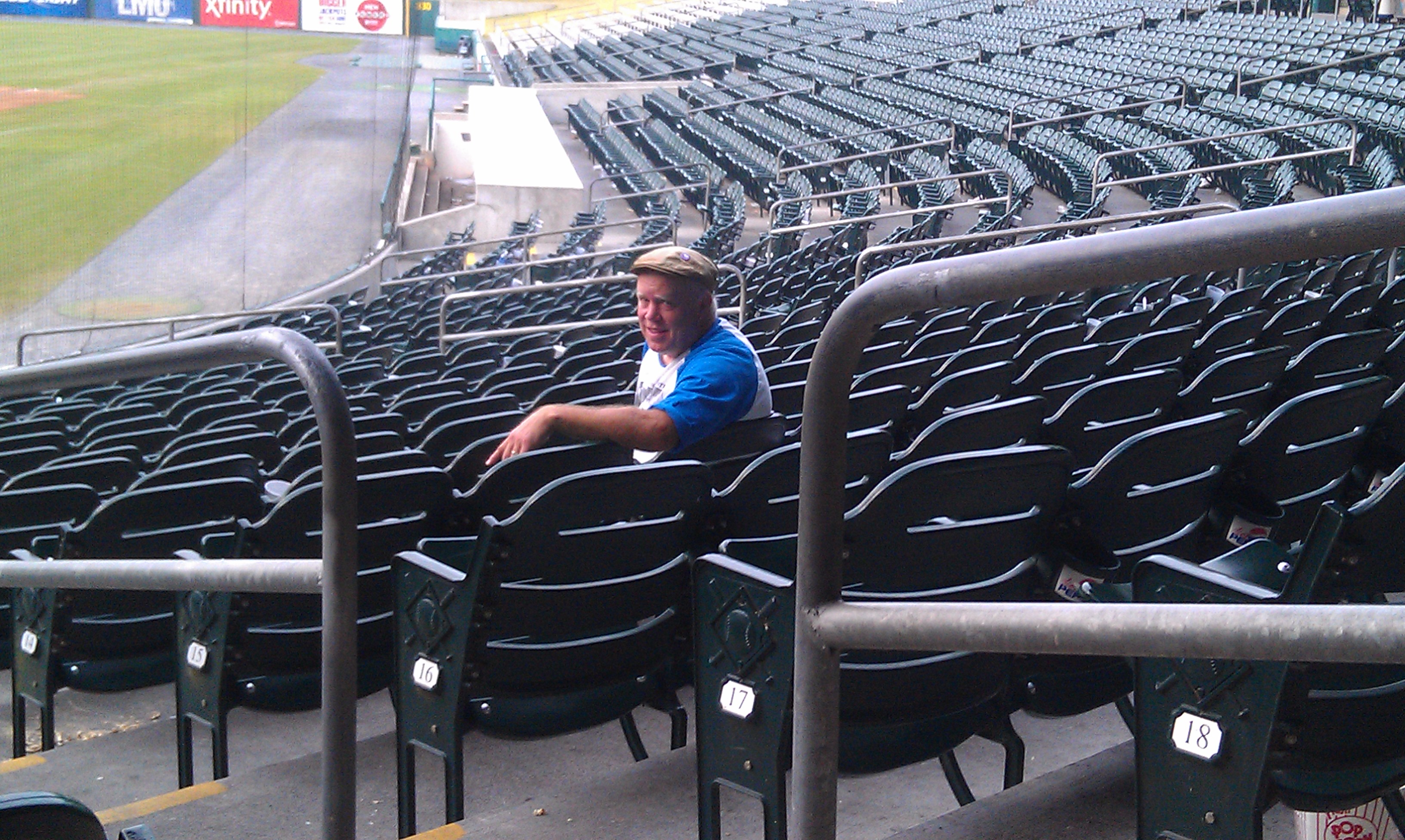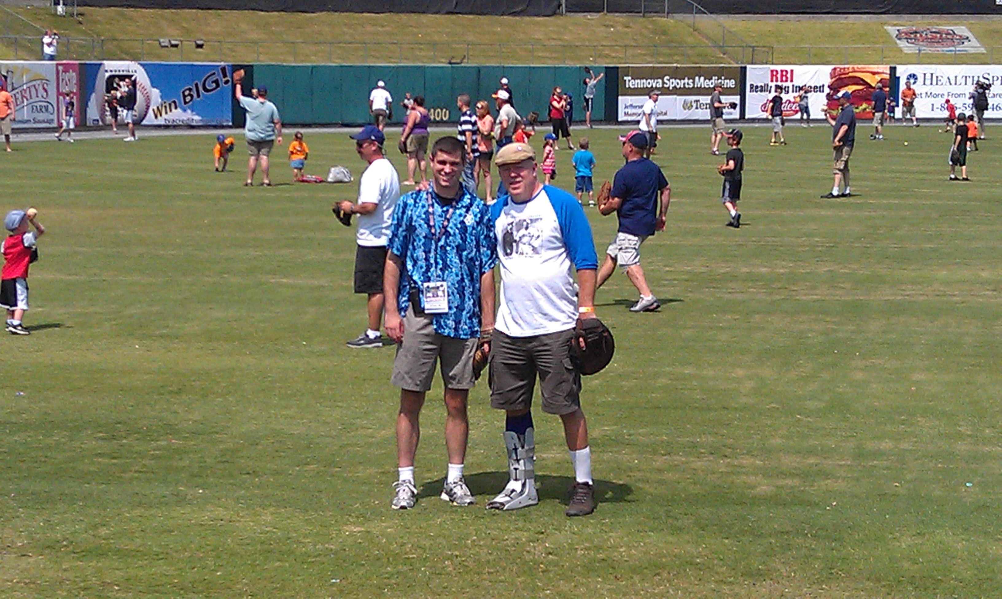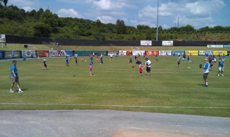 It was a pre-game event. Carl wanted to throw. Rey was busy trying to make sure it got started OK. And in the end they threw for about 15 minutes. It has been very intense at Rey’s work, because they are hosting the All-Star game for the Southern League today. After the Gala last night, Rey seemed to visibly relax. Hopefully that means that everything is in place now, and it is just another game. Followed by a party at the park for both the players and the fans. Jay