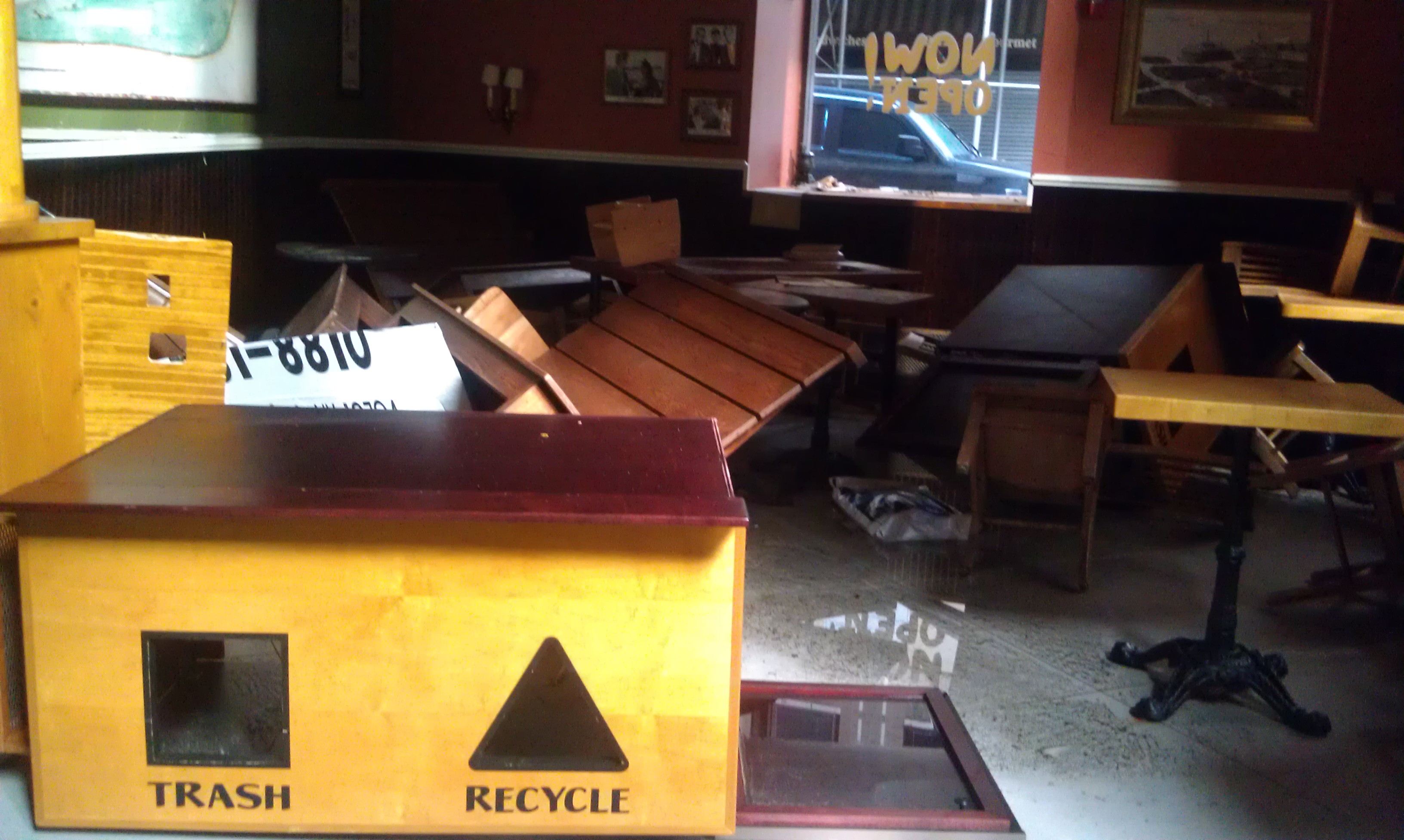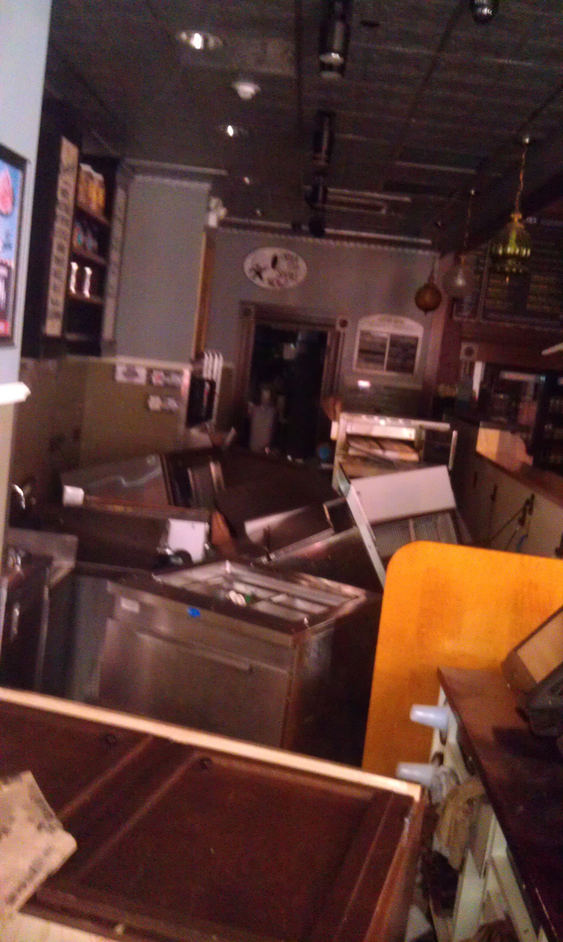 The wall disconnected from the floor, allowing water to drain down to the business below.