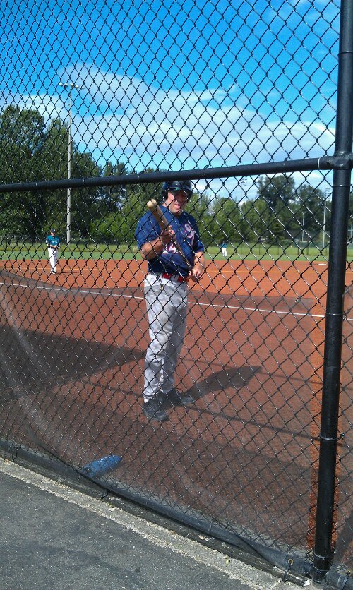 This is a new team for Carl, the Silver Foxes. They played a team that normally dominates, and turned the tables. They played reasonably good defense, hit well and won 5-1. Carl pitched 5 innings (5-9), and got the win. He also ran the bases, scoring one of the runs. (In the past few years, he has used courtesy runners. He is much happier playing the full game.)