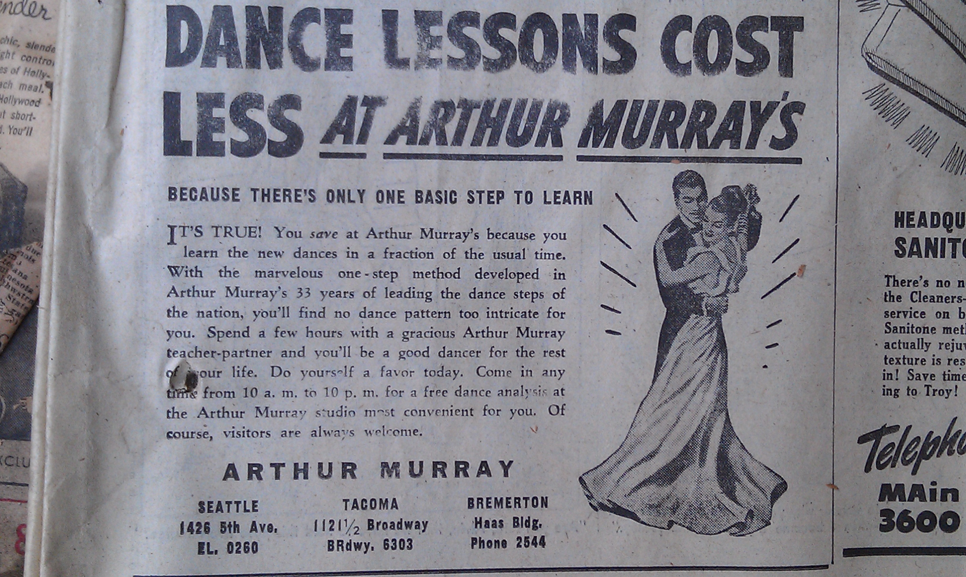 An Arthur Murray advertisement – noting that in 1947 they had been around for 33 years. (Almost 100 years old now)