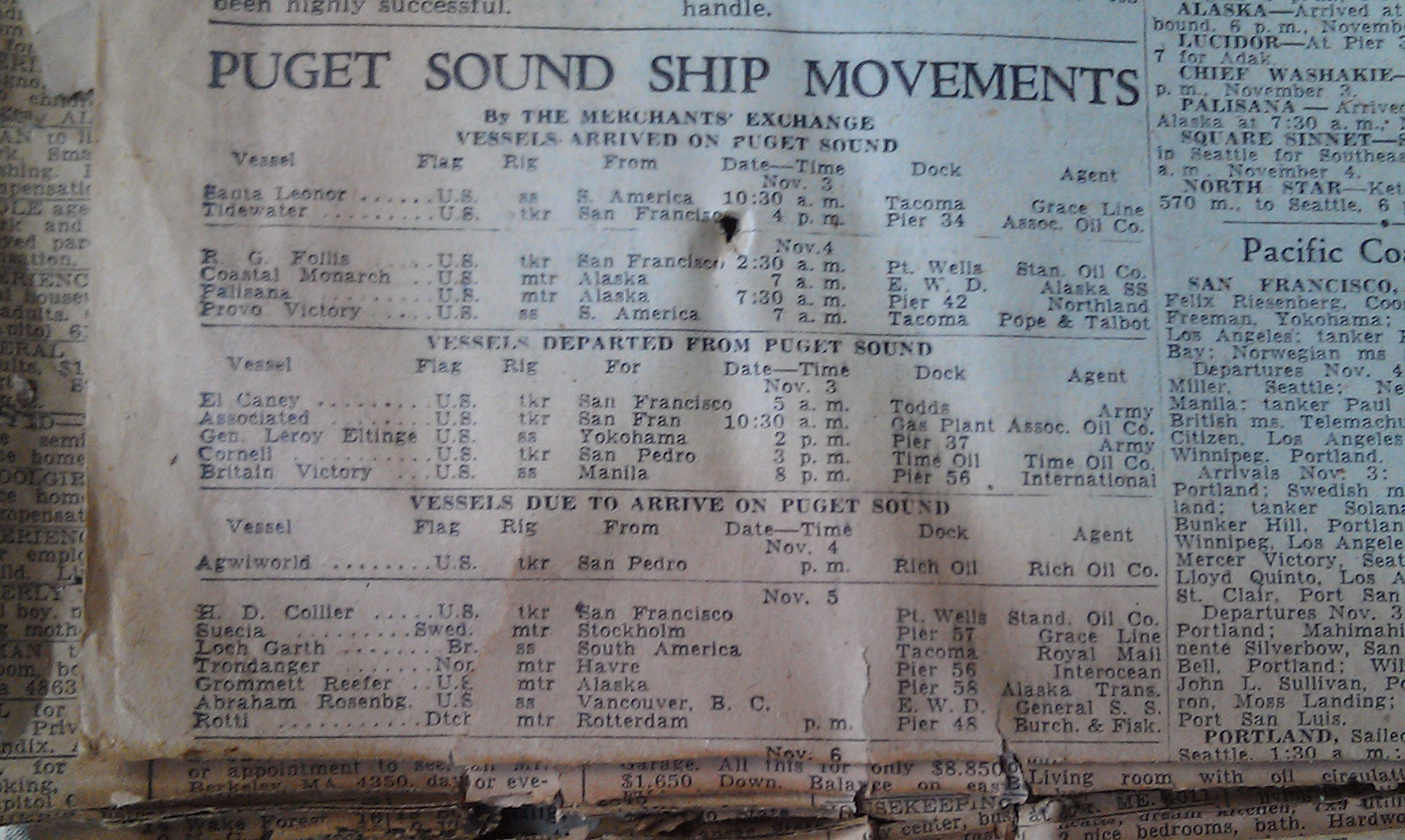 Ship Movements (I don’t think these are reported in the daily paper anymore)