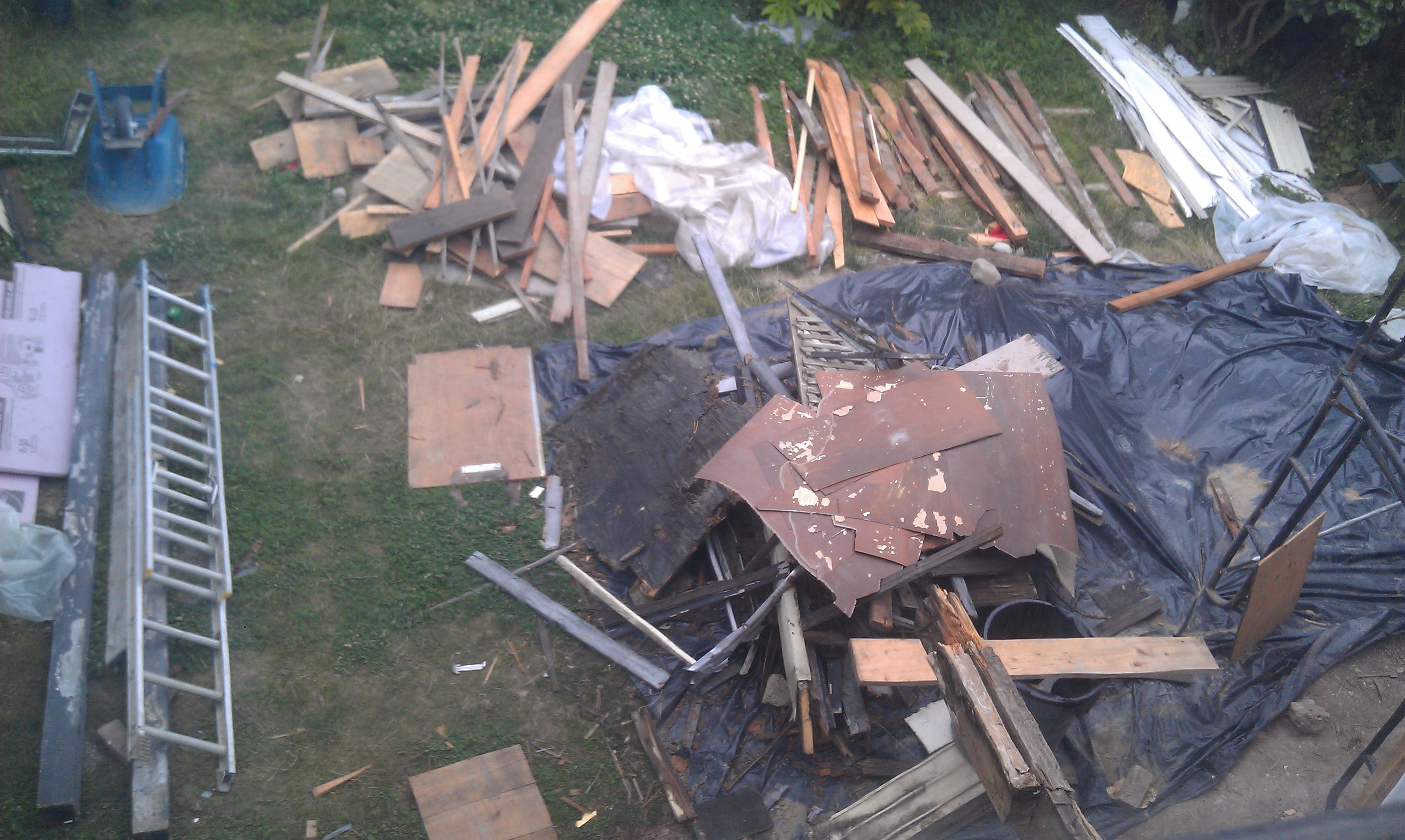 And finally – the backyard pile. It is one measure of the amount of work. (They have carted off some of the debris, but it is still a measure of sorts.)
