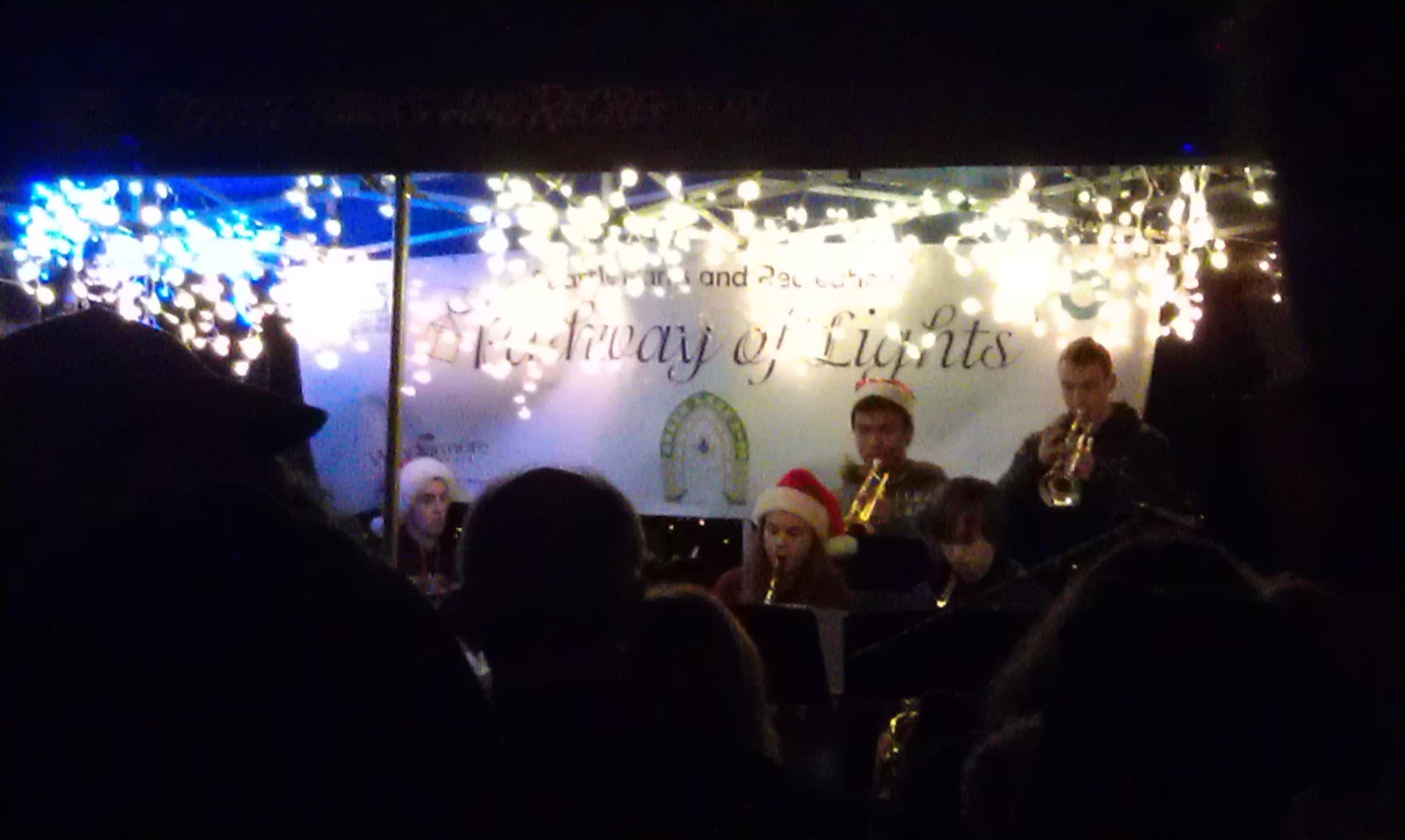 That resulted in one of the most crowded walks in recent memory, with the usual singing groups, lit-up outfits, lighted kayak parade, dog walkers (try to see a leash leader in the dark), crying babies and complaining kids. [The walk is about 3 miles, and I bet that most of the complaining comes after mile 1.]