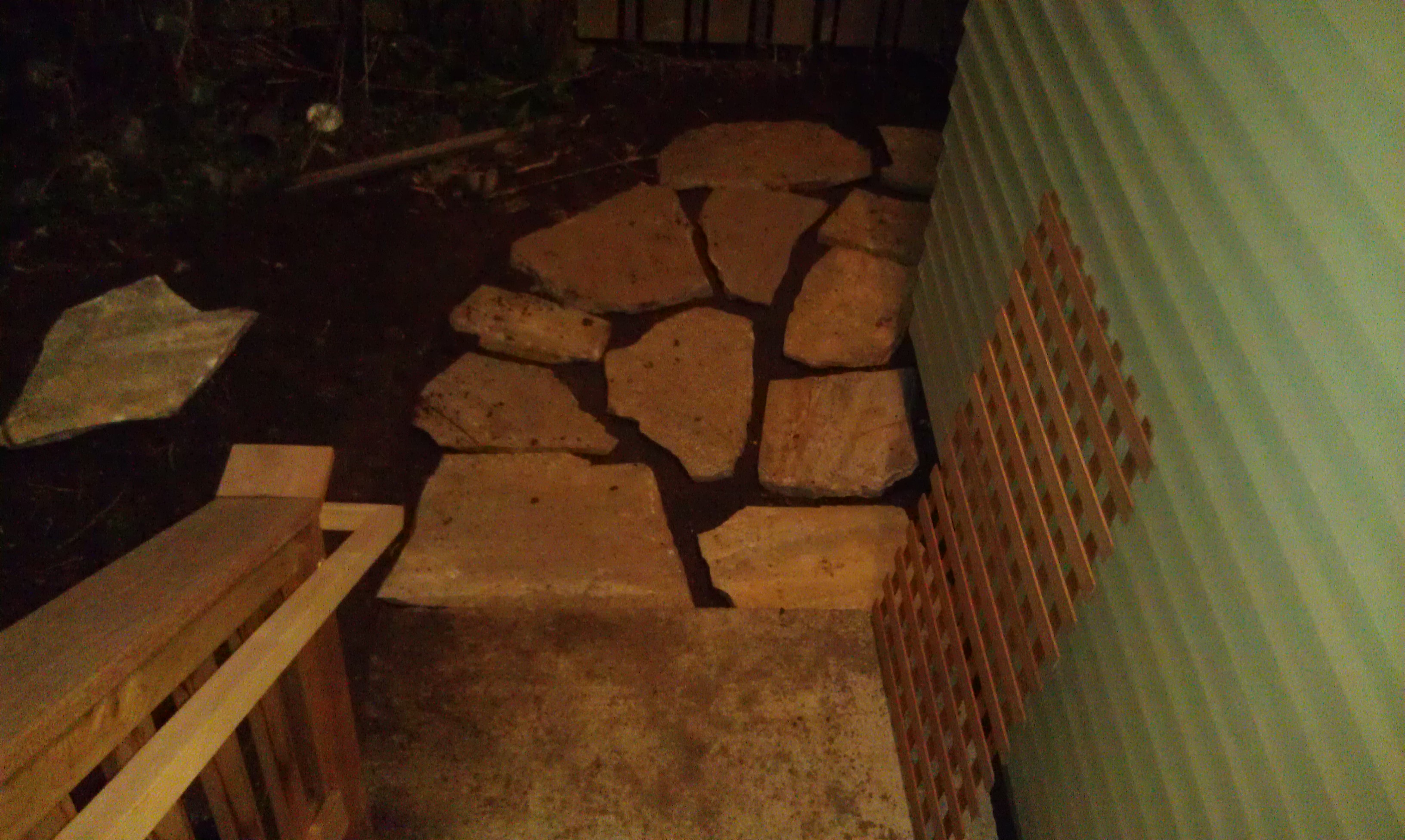 When I got home tonight, the stones were laid out from the front walk to the back deck.