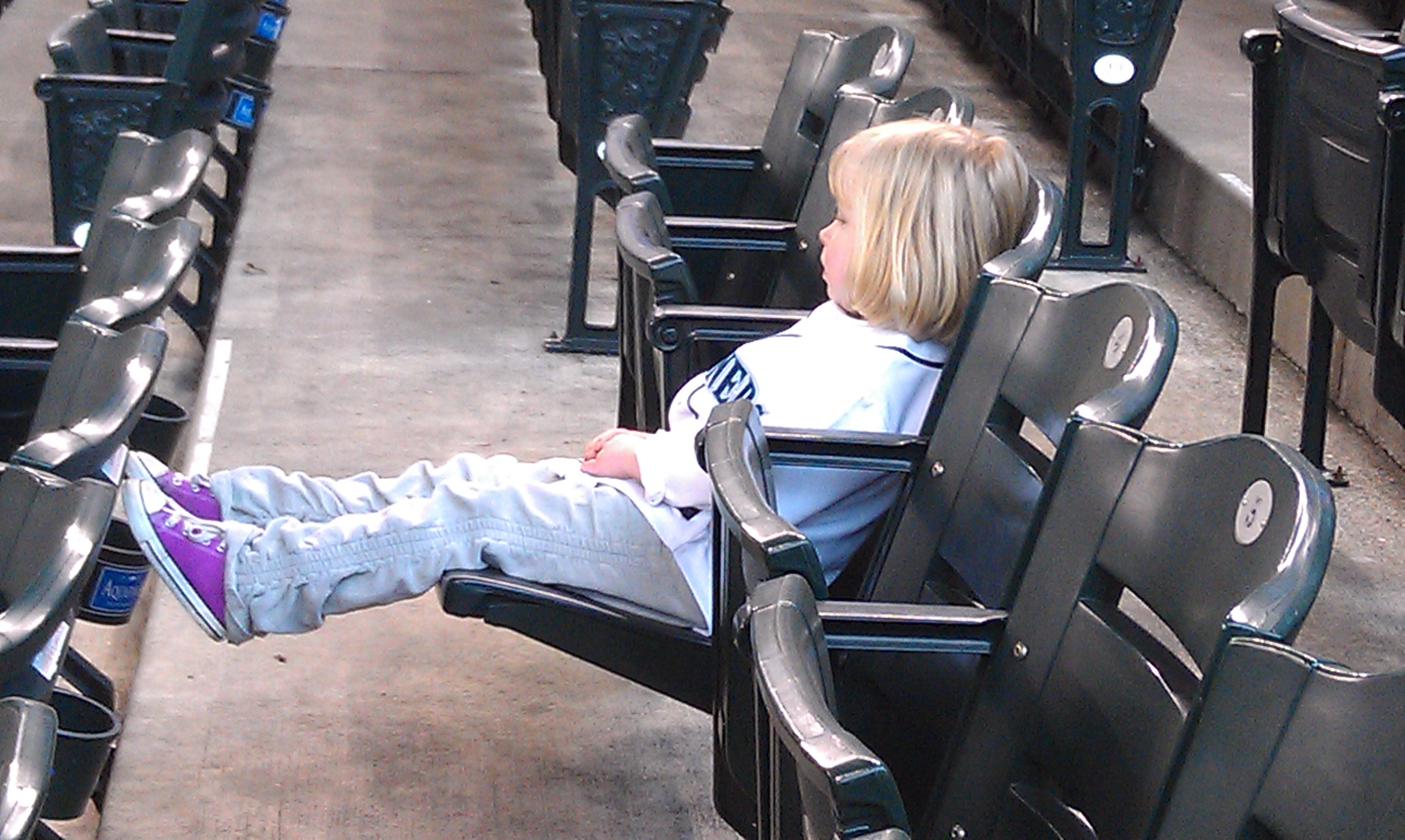 Fan Fest is always a bit more fun when accompanied by a child, so we appropriated Carl’s current 3-year old for the morning. Sagan was reticent to meet the ball players, but really looking forward to getting onto the field.