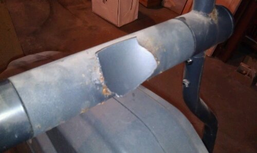 But today, after an hour of work, a weld gave way.