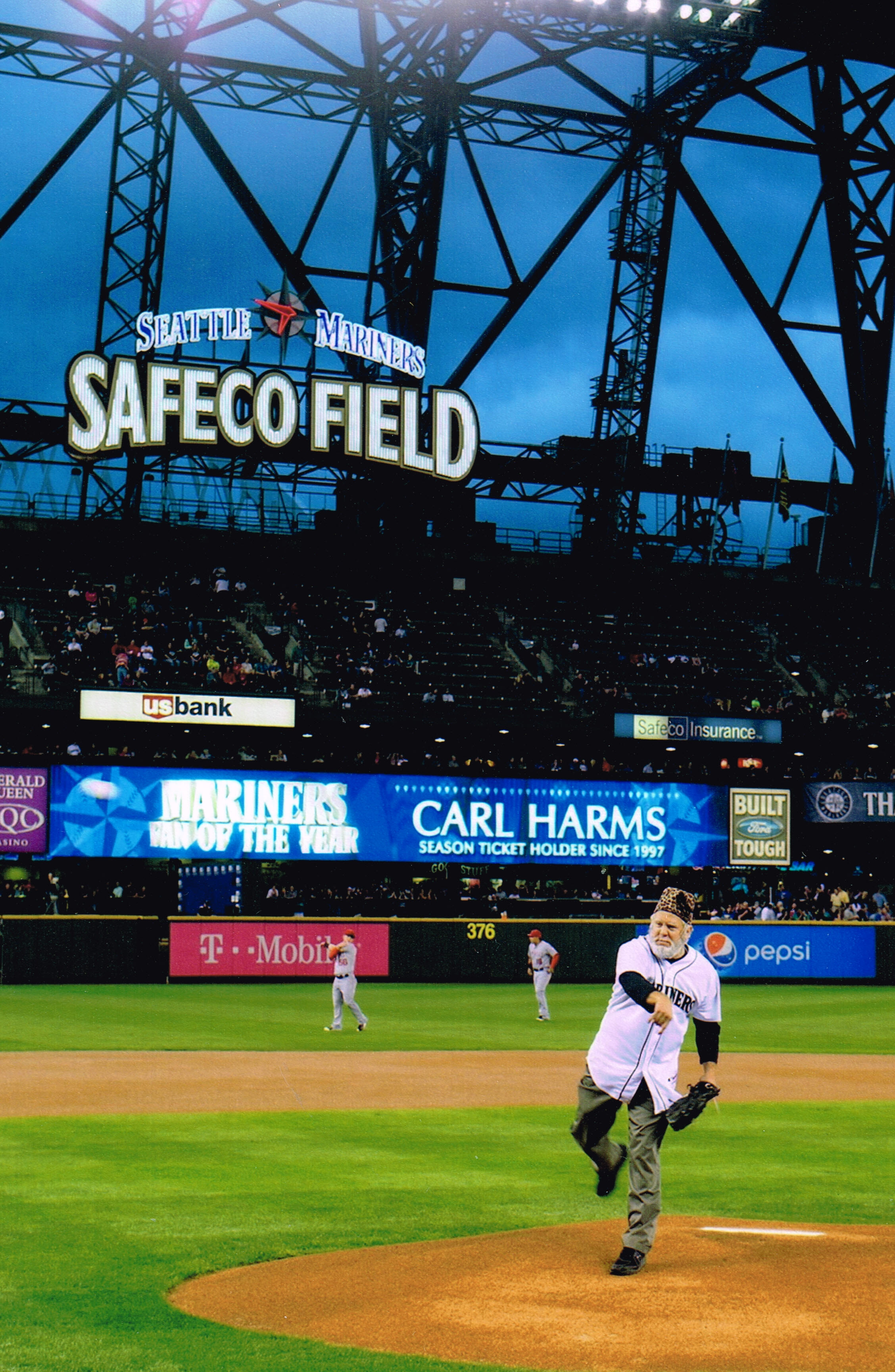 Before the game (see the previous post – from September), we were allowed to hang out around the home plate area. They even let us into the dugout briefly. Rick Waits happened by while we were down there. Carl has bent his ear spoken with him throughout the year, and he came down to join us for a picture.
