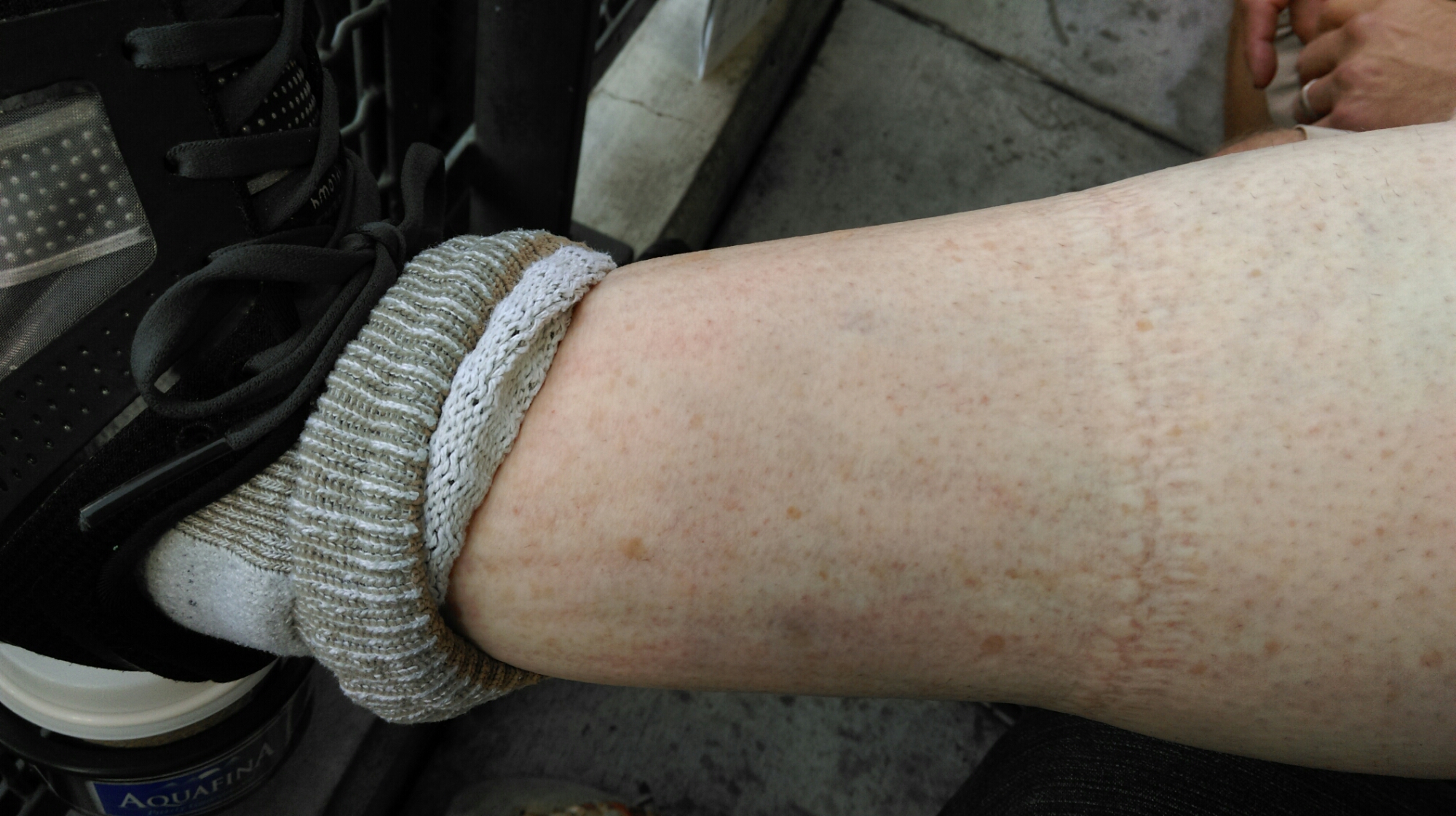 And I got a bag of ice to go with it. What is really confusing is that I had a mitt on my hand, and my feet were behind the seat in front of me.