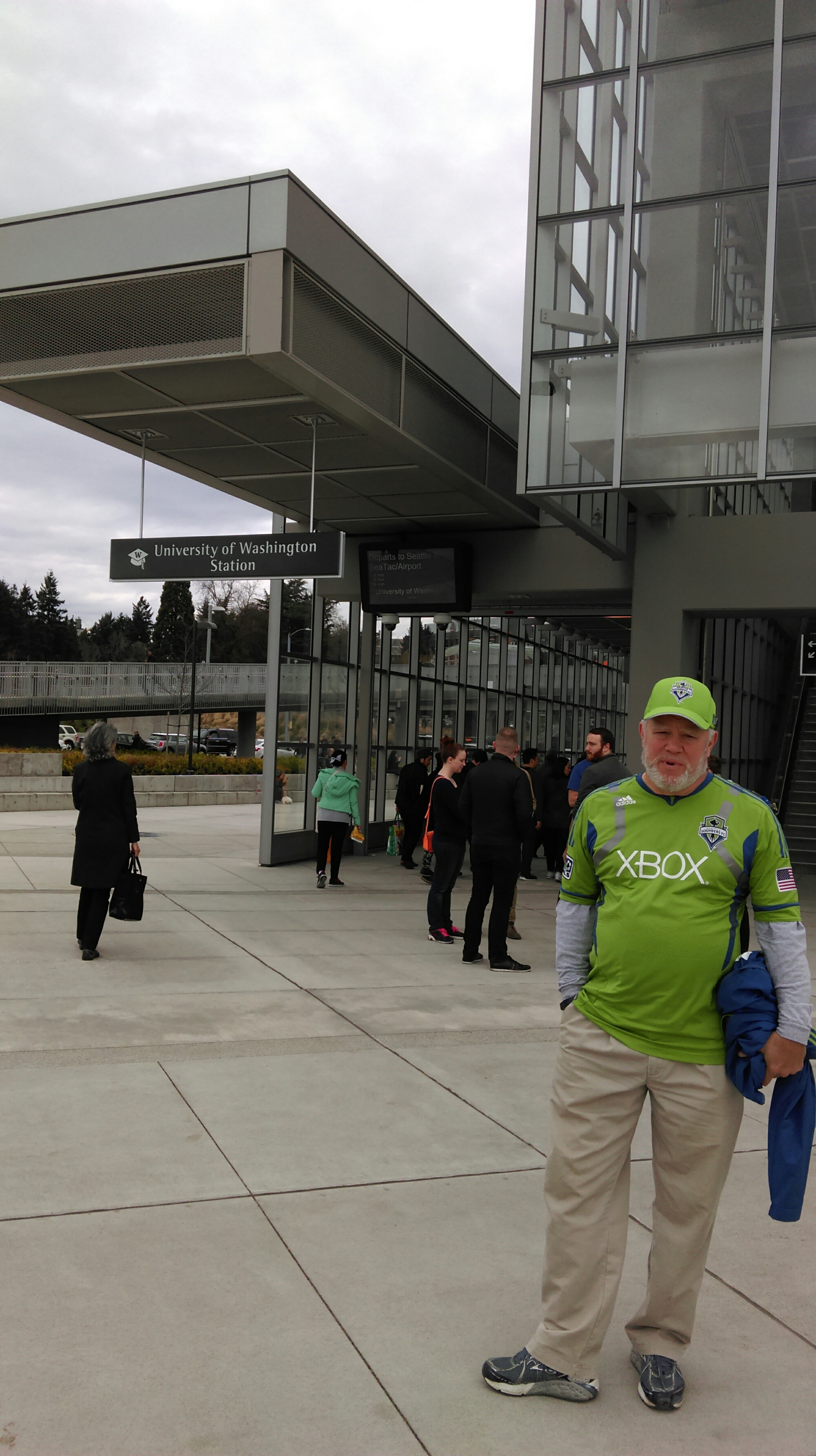 Our first ride from the U-link station. Crowded, but not uncomfortable. Faster than the bus, except for the hall hour walk to the station. Next weekend the bus routes change and there will be a pretty direct run from our block to the station. We have not figured out the bus stops on the station end yet.
