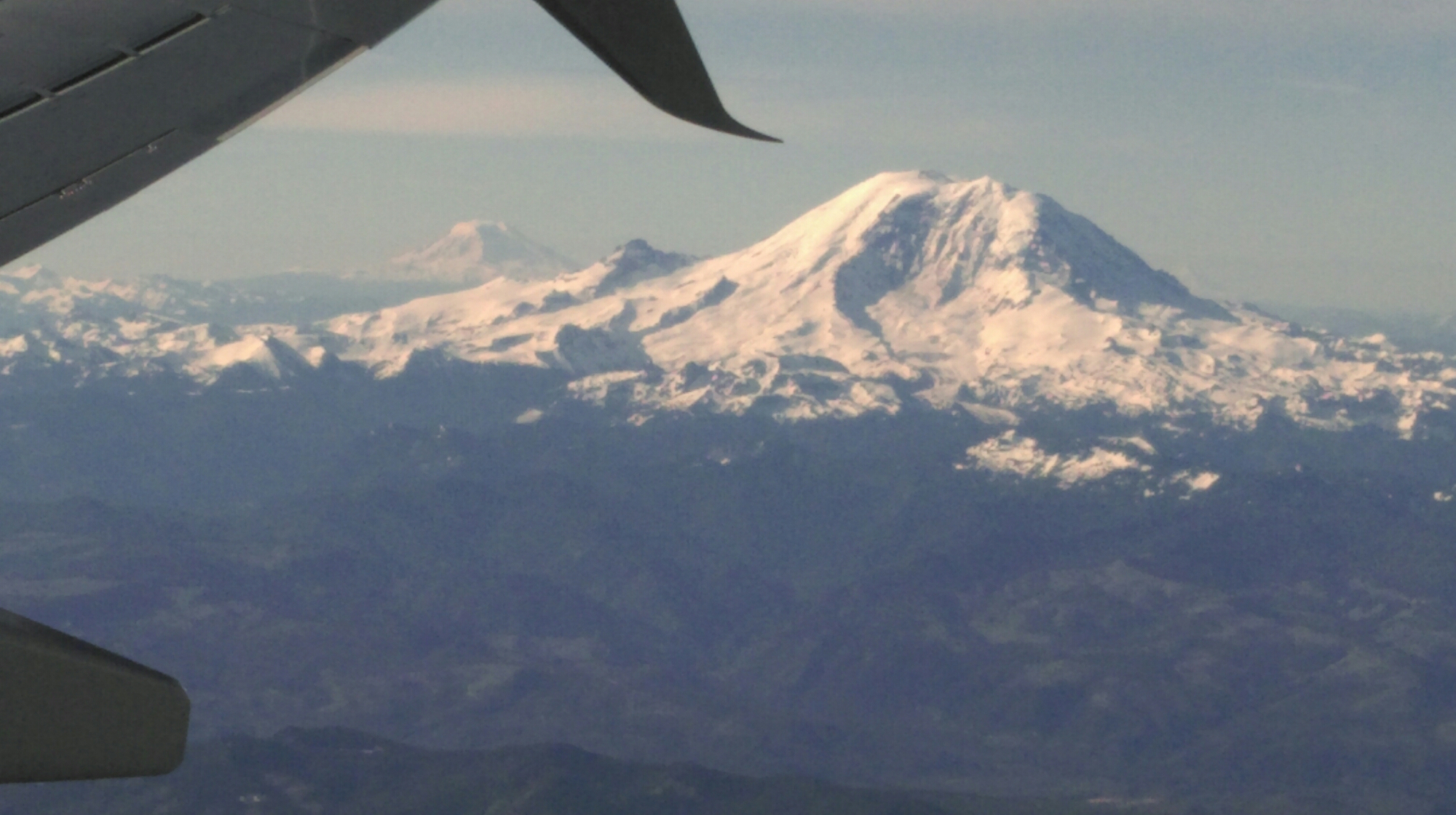 Rainier in the foreground, Adams in the back. Mt. Saint Helens was off to the right.