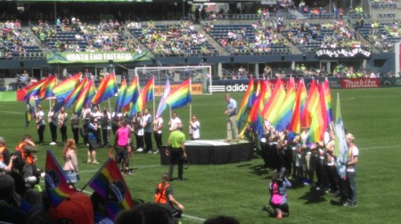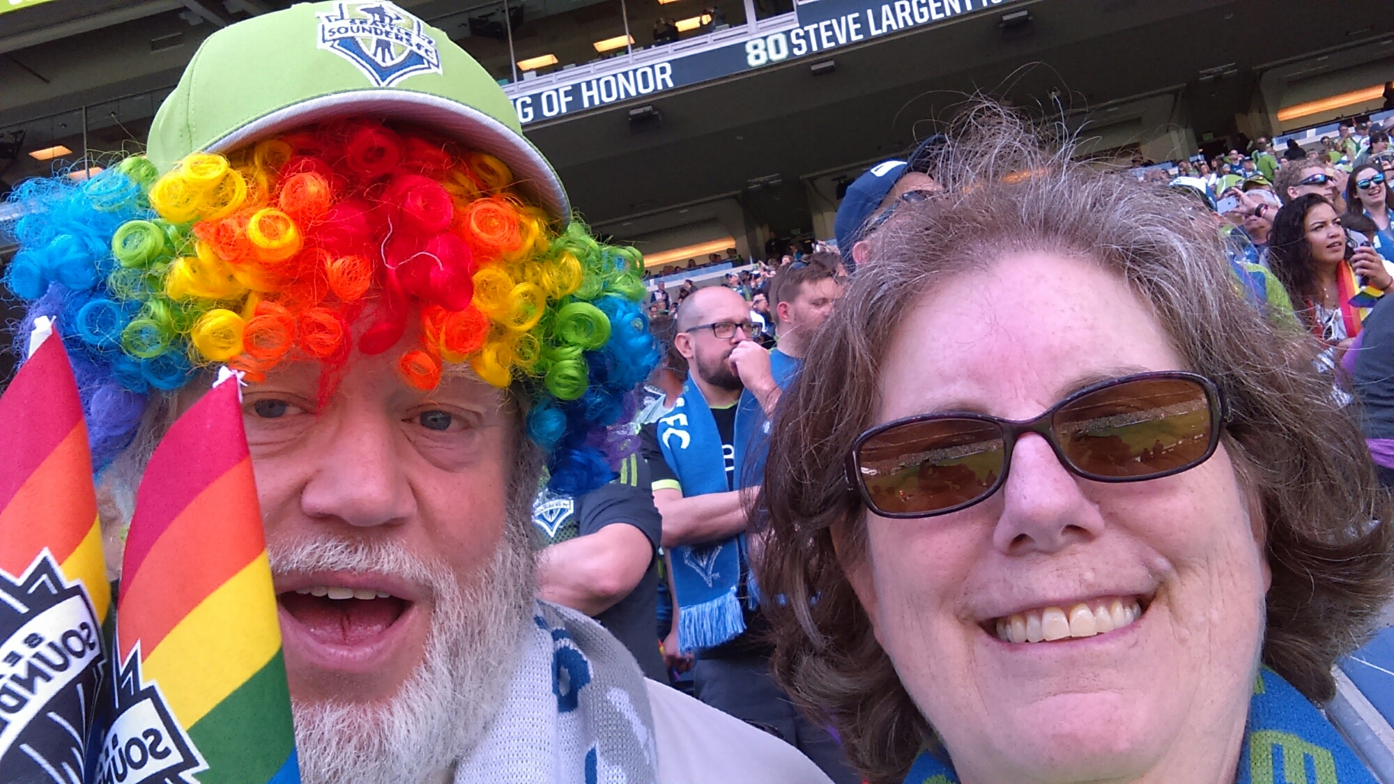 Back in Seattle. A whirlwind day at work followed by Pride weekend. The Sounders embraced the theme, and so did Carl.