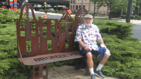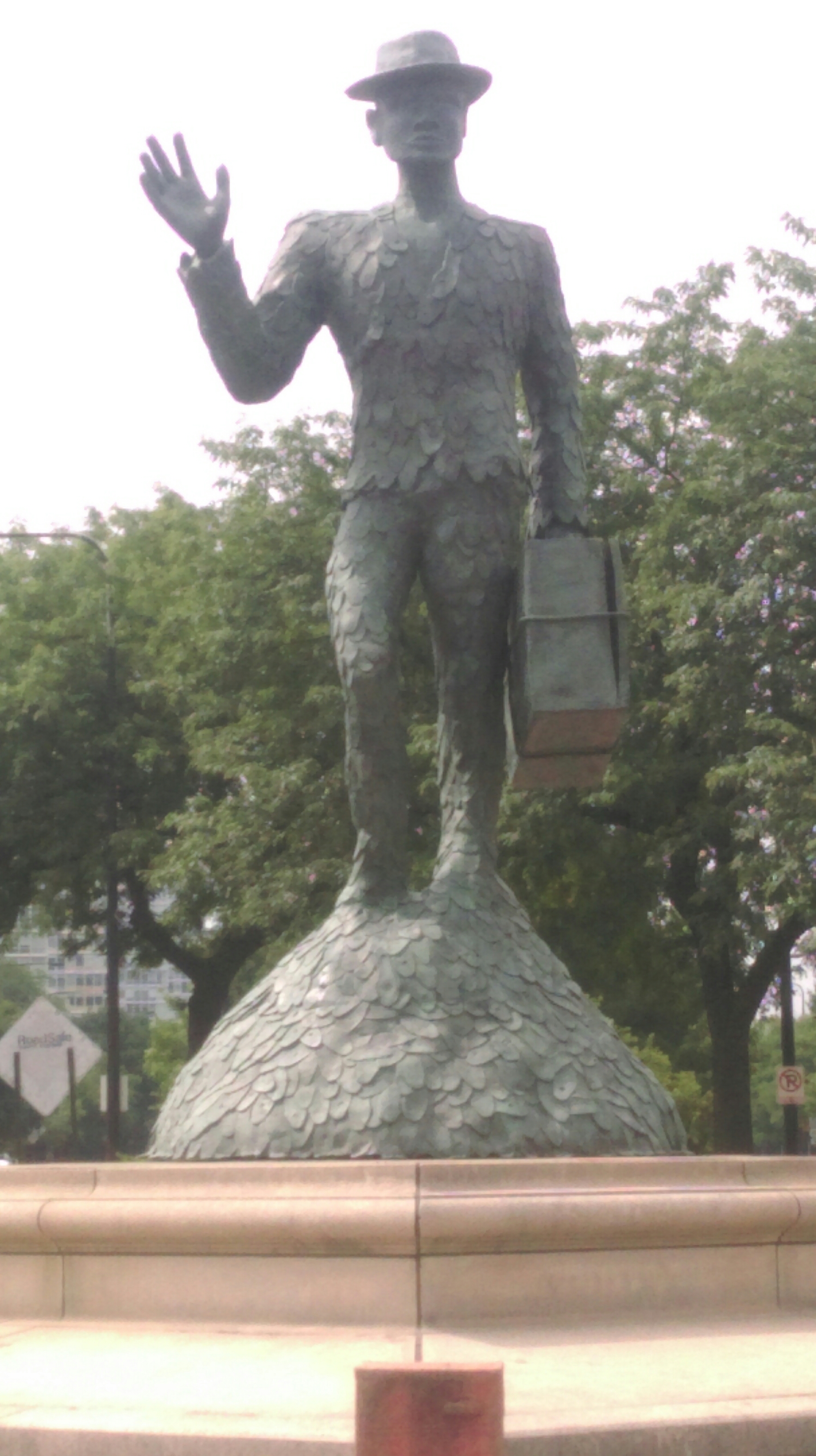 Well, that took way to long to figure out. This was not too far from our hotel, in Bronzeville. It is a statue commemorating the migration of African-American’s to Chicago. The surface is done with representations of shoe soles.
