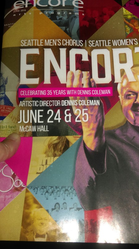Next up was the last Seattle Men’s and Women’s Chorus concert conducted by Dennis Coleman. After 35 years at the helm.