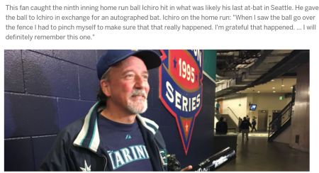 Kevin caught it. The stadium was rocking, “Ichiro, Ichiro, …”