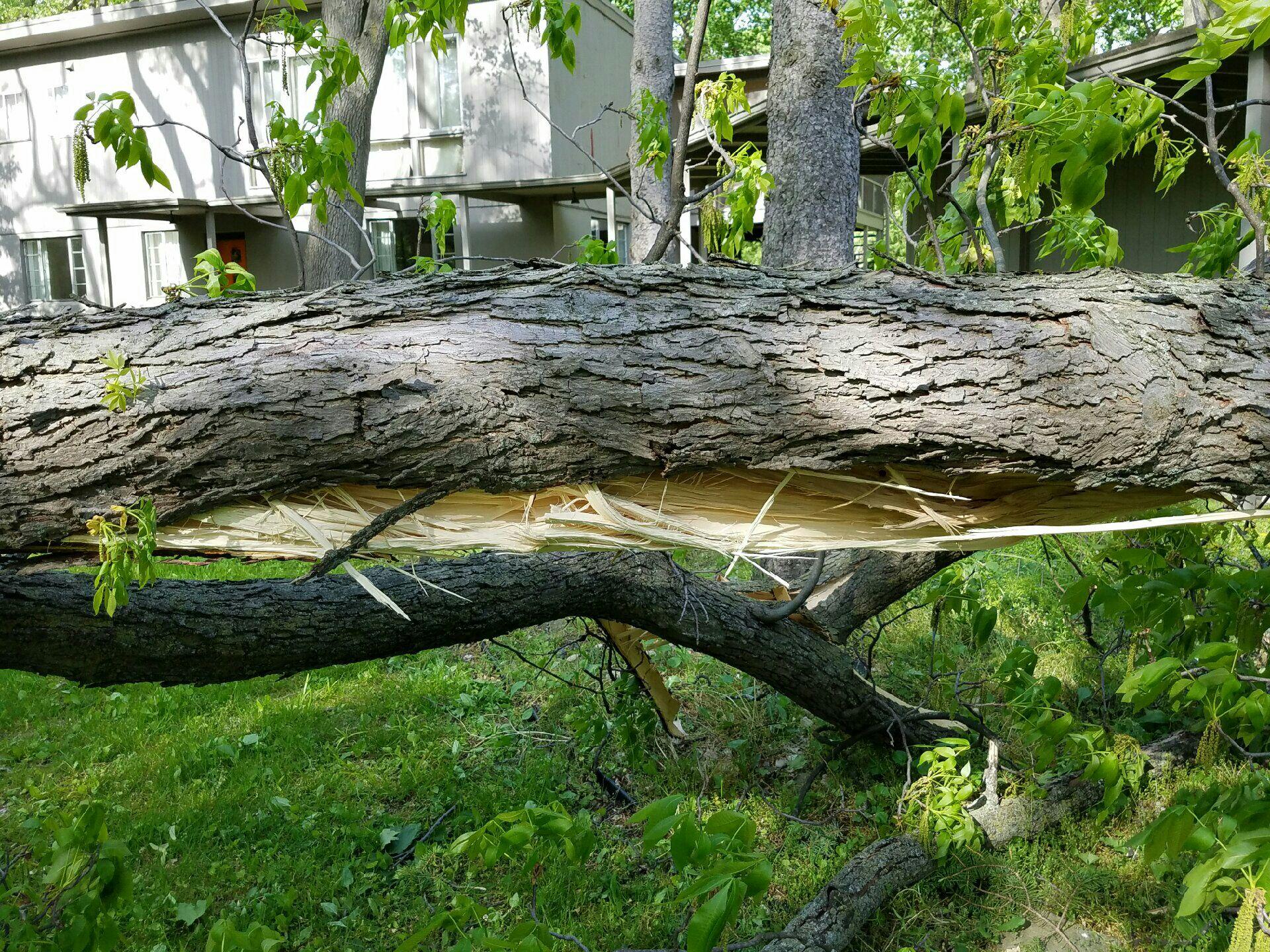 Another high wind event blew through town, and one of the trunks descended all the way down, to the neighbors garage.