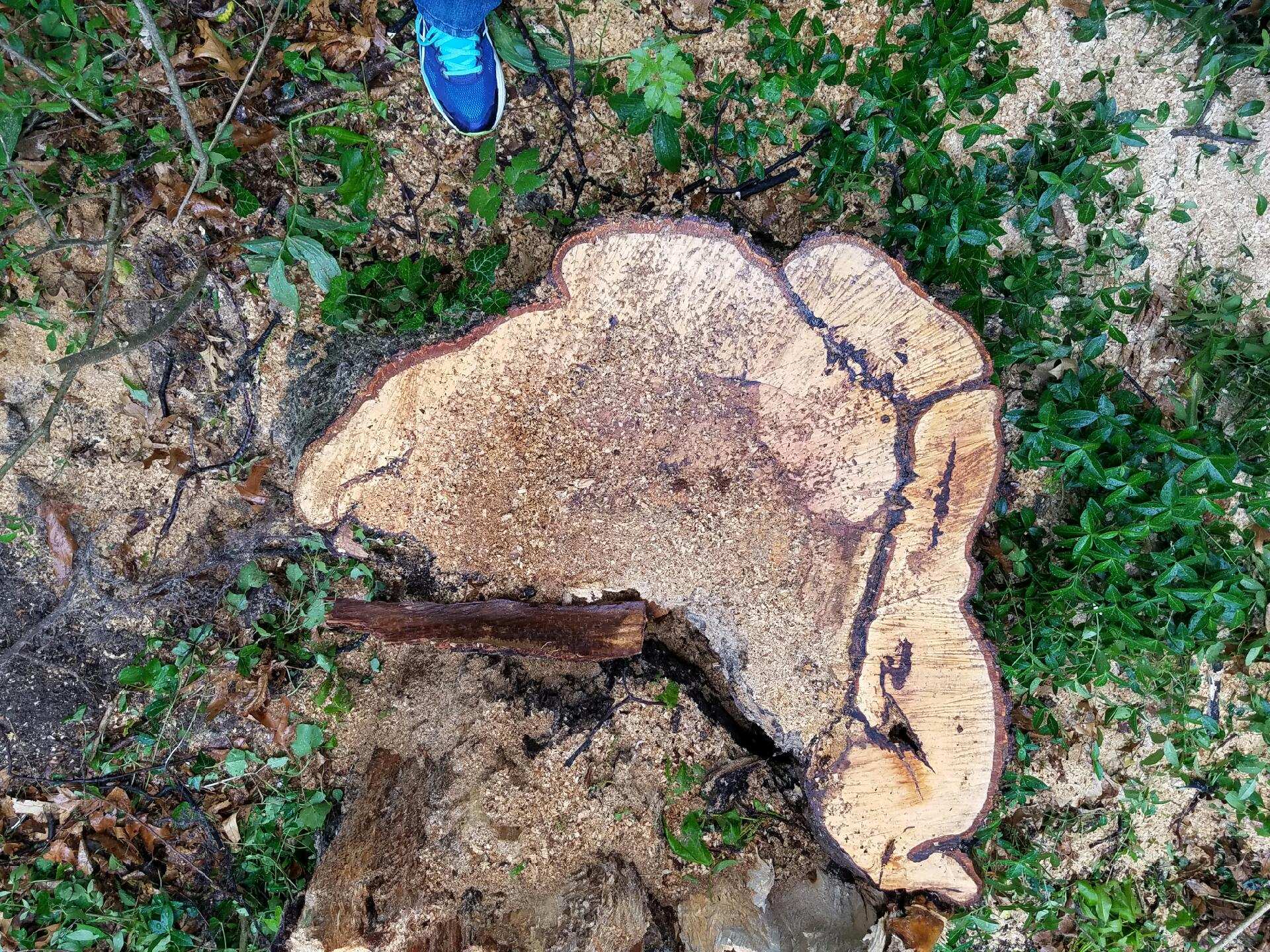 Dad was still not convinced that the remaining trunk needed to come down. I was trying to conspire with Jane to force the issue. In the end the tree guys called by the neighbors took down the remaining trunk in addition to cleaning up it’s sibling.