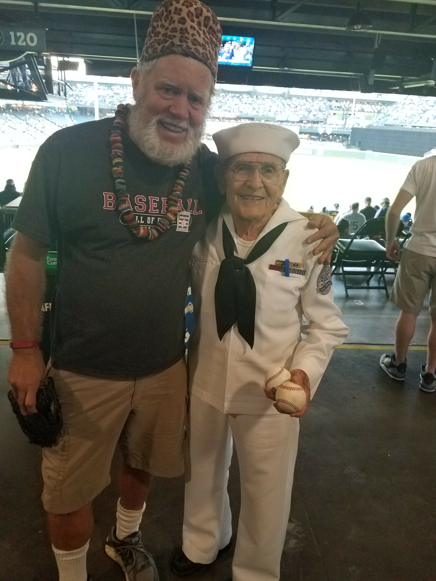 Carl also met with Burke, an honoree in the 4th inning for his military service. He is the definition of spry, running off the field three days before his 93rd birthday.