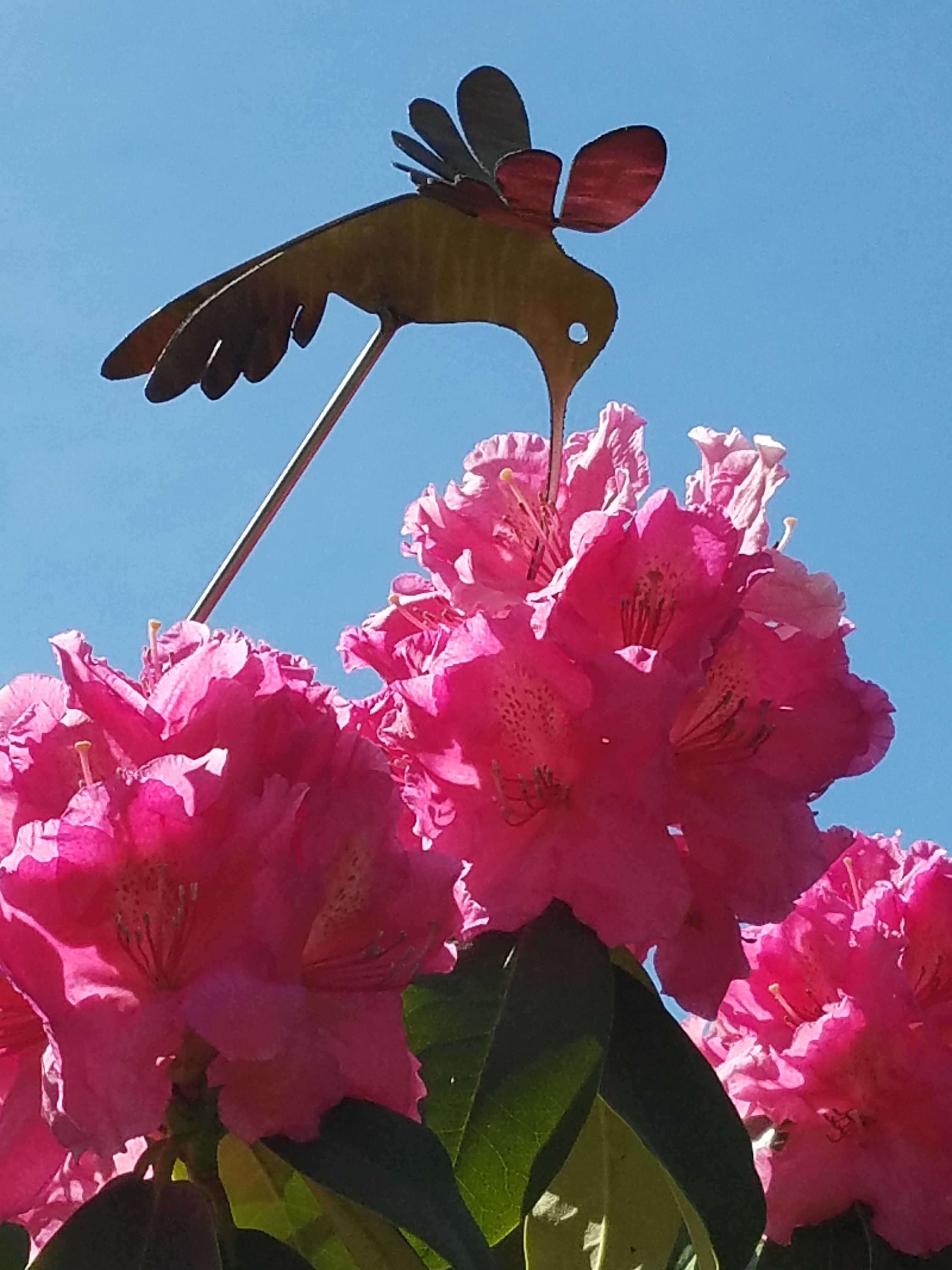 Sunday dawned with more weeding. Instead of the 6 mile walk to the stadium, we satisfied the need to move with a shorter jaunt back to the street fair. We picked up a hummingbird for the backyard