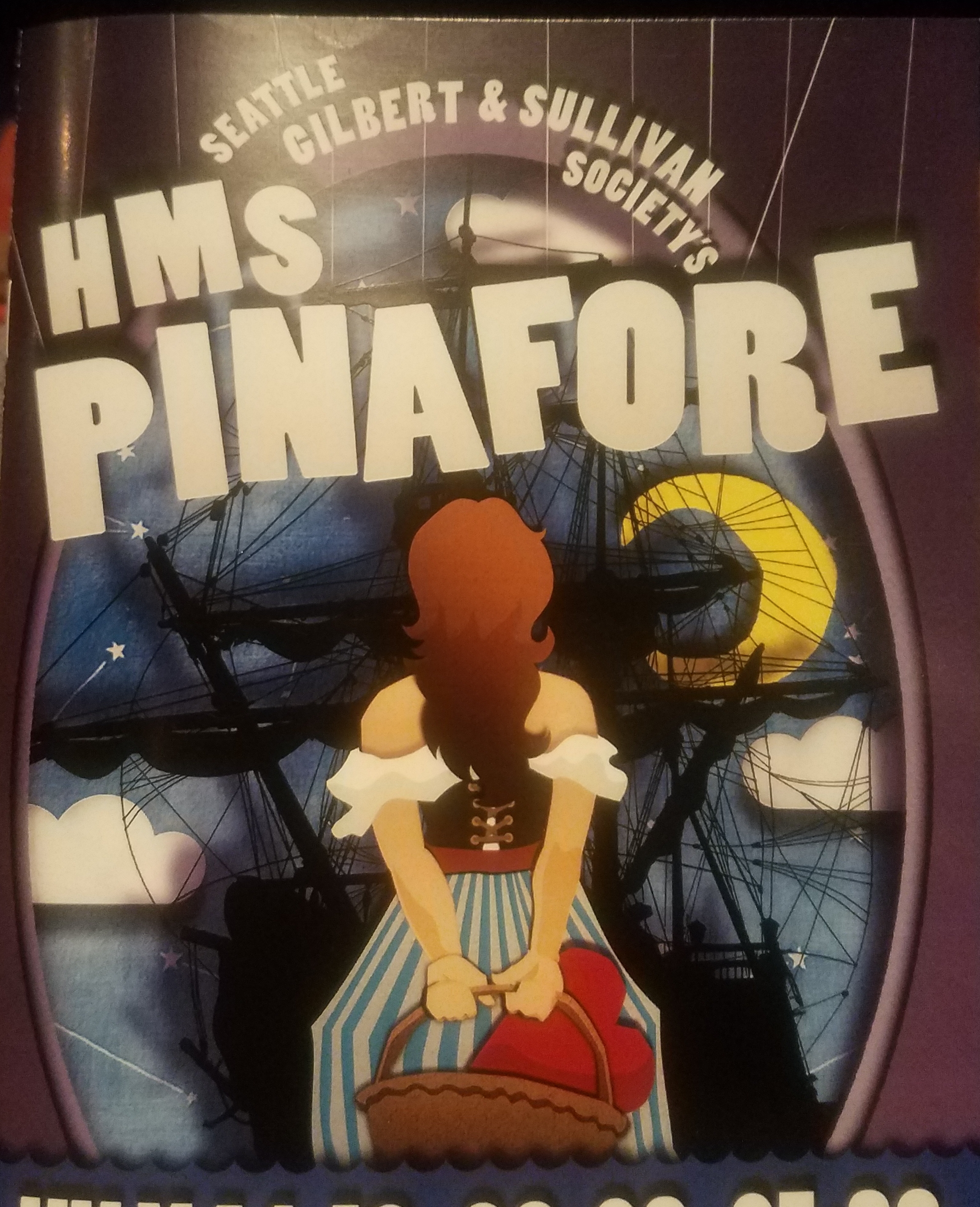 The evening found another spectator event at a Gilbert and Sullivan show, H.M.S. Pinafore. It was quite good. The Lord Admiral was especially funny. There’s a song between the Captain, Lord Admiral and Josephine where the Captain and Admiral got into a bit of a one-ups-manship with the Captain first ringing a small bell, the Admiral then going to his triangle, the Captain winning a struggle to ring the ship’s bell, and the Admiral coming back with cymbals. No justice done by my explanation, but it was funny.