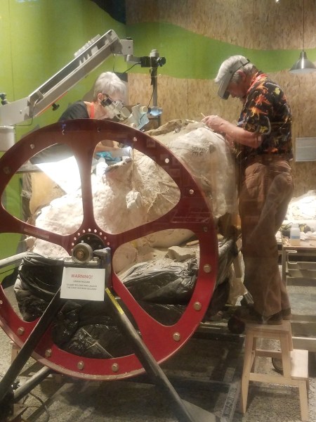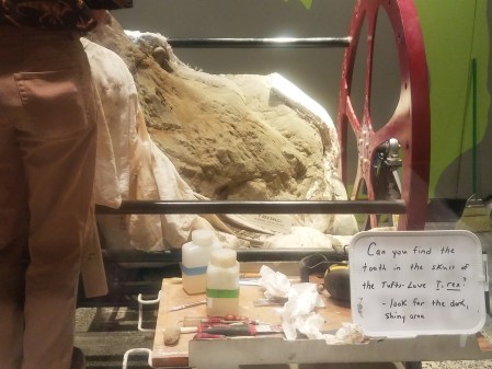 We started the weekend with a walk to visit the Tufts-Love t-rex. The Burke Museum folks are in the process of removing the plaster jacket that accompanied the skull from northeast Montana. [The name is from the two field folk that discovered the skull.]