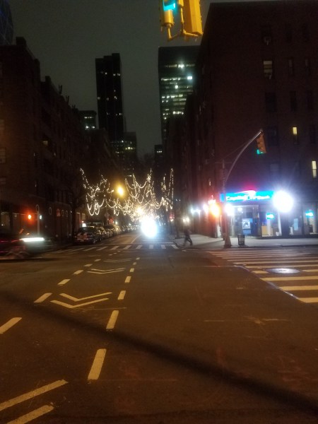 We watched the trash swirl as we walked down 10th. (Let it blow, let it blow, let it blow.) We started at 49th, aiming at the High Line, at about 30th. When we tried to cross 39th we both got blown about 5 feet sideways, struggling to stay upright. So we decided it was better to turn around and find coffee.