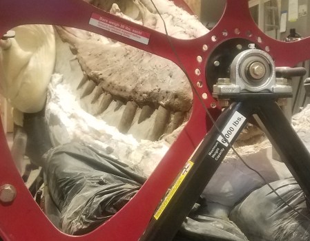 And checked on the progress of releasing a T-rex skull from rock encasing the skull.