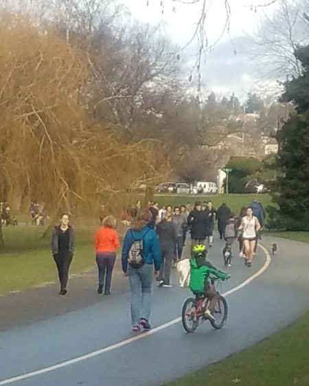 Seattlites were all drawn to the sunshine. Walking without a raincoat, what a dream.