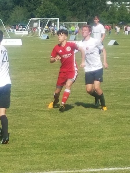 Soccer, even an action shot. The player in red is Parker. A friend from Eugene up for a showcase tournament. He played 4 games in two days, scoring 2 goals along the way.