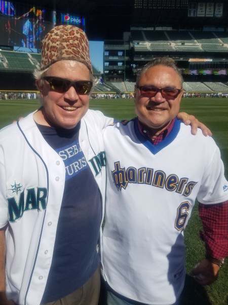 The Mariners are winning more than losing, so that’s good. And they held a pre-game photo session for season ticket holders, that was well run, and fun. No autographs were allowed, so that removed one element that can be sort of pushy. Instead the players just made their way around the stadium warning track, chatting and posing for pictures. What the Mariners did right was have the players start at different locations so nobody was at the beginning or end of the line.