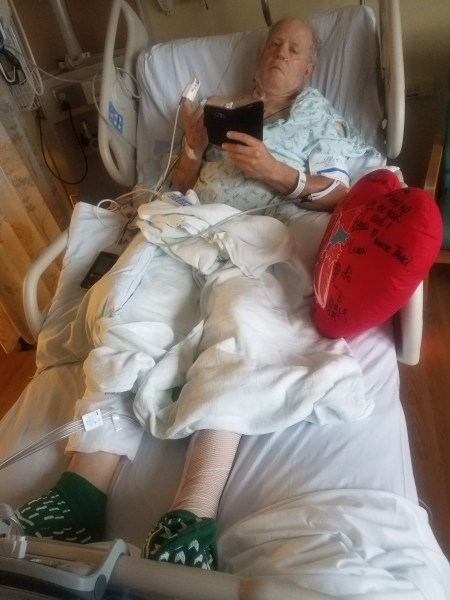 The goal today was to flush suspected infections out of Carl’s knee. Arthroscopic with 2 incisions.