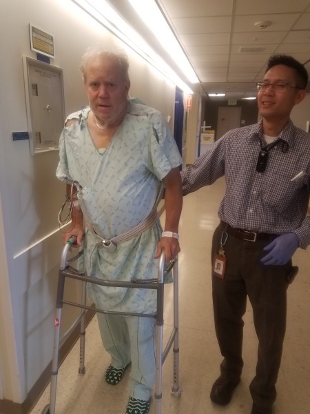 We were so close to the exit, but then the moving decreased with the size of the knee increase. So, onward to the knee surgery and start over on most of the goals. With both upper and lower issues to deal with, for a time the goals seemed even further away. And stability of temperature as an indication of infection control became primary. Slow progress, but not always forward.