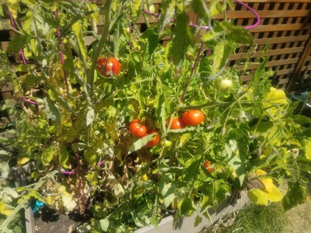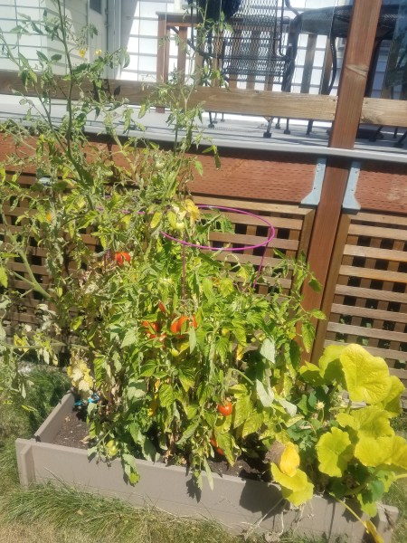 Checked out the vegetables as well, picking two tomatoes and one zucchini.