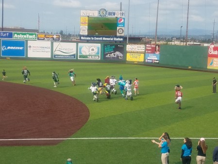 Next up was a single-a Everett Aquasox game with a group of Mariner fans who Carl hangs around with, usually at a stadium. The Frogs! And they lost. Even the mascots lost to a little boy ( seen leading the pack on the left.)