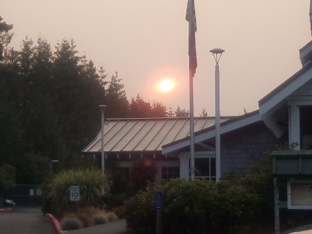 But all of the distant fires (eastern Washington and British Columbia) have added an extremely thick haze. I could see the full shape of the sun, and it was red. The haze was thick enough that the lack of sunglasses was tolerable.