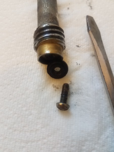 I started with the cold water tap. It came out easily. I spent a short amount of time looking at the bits and pieces. It was clear that one was in need of replacement, and possibly two.