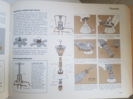 So I consulted our DIY book. This book was given to Carl, specifically not to me, several years ago when we had a local contractor redo some of the downstairs bathroom.