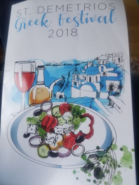 To celebrate we headed out to the Greek Festival. A combination bus and walk to get to St. Demetrios. It was breezy and smelled like fall. Wet leaves.