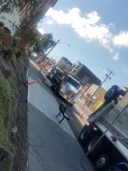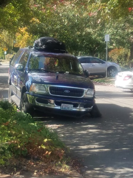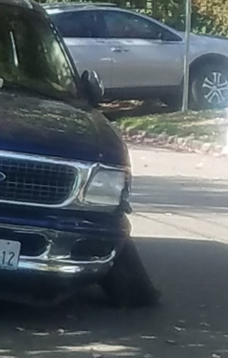 And then there is the truck that has spent the weekend on our block. As far as I know, no neighbor knows the entire story. Facts: The truck will not drive away without serious help. It didn’t drive far in this condition. Rumors: The police arrested the driver. There is a note on the windshield asking not to be towed, that “he” will get it moved. The mountain dew on the hood is not empty.